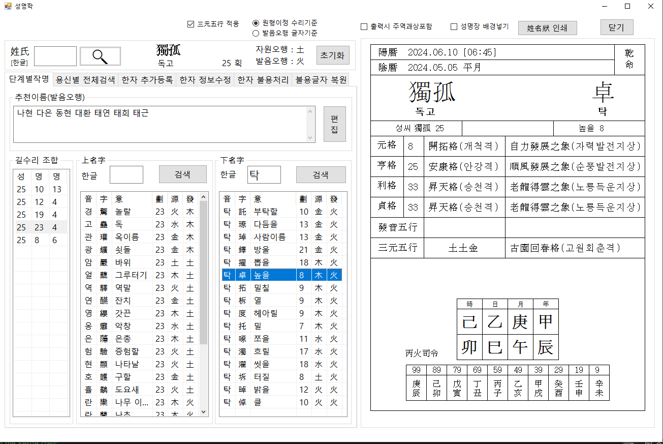 프로그램에 포함된 성명학에 대해 여러 번 소개 했습니다만 가끔 문의가 있어서 자세히 남깁니다.