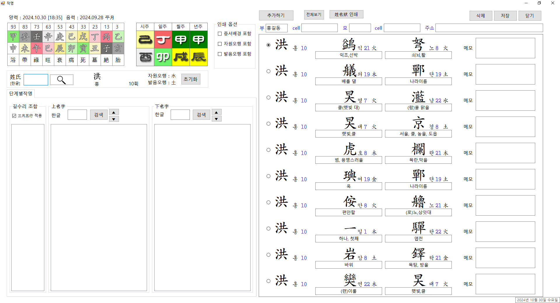 성명학 프로그램 거의 마무리 단계 입니다.