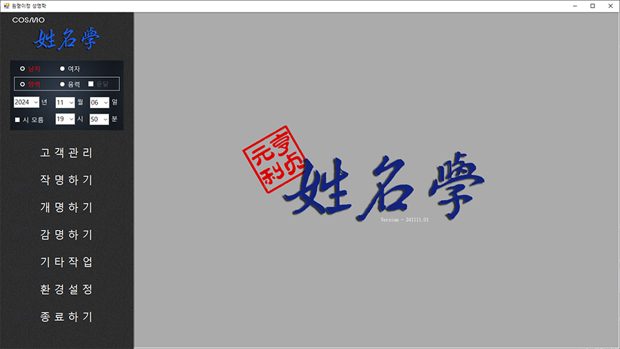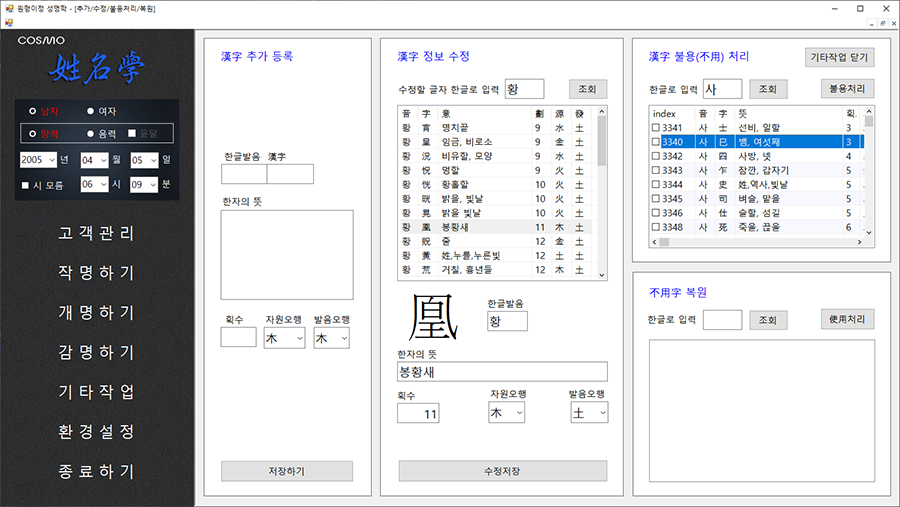 성명학 단독 프로그램 개발 완료.