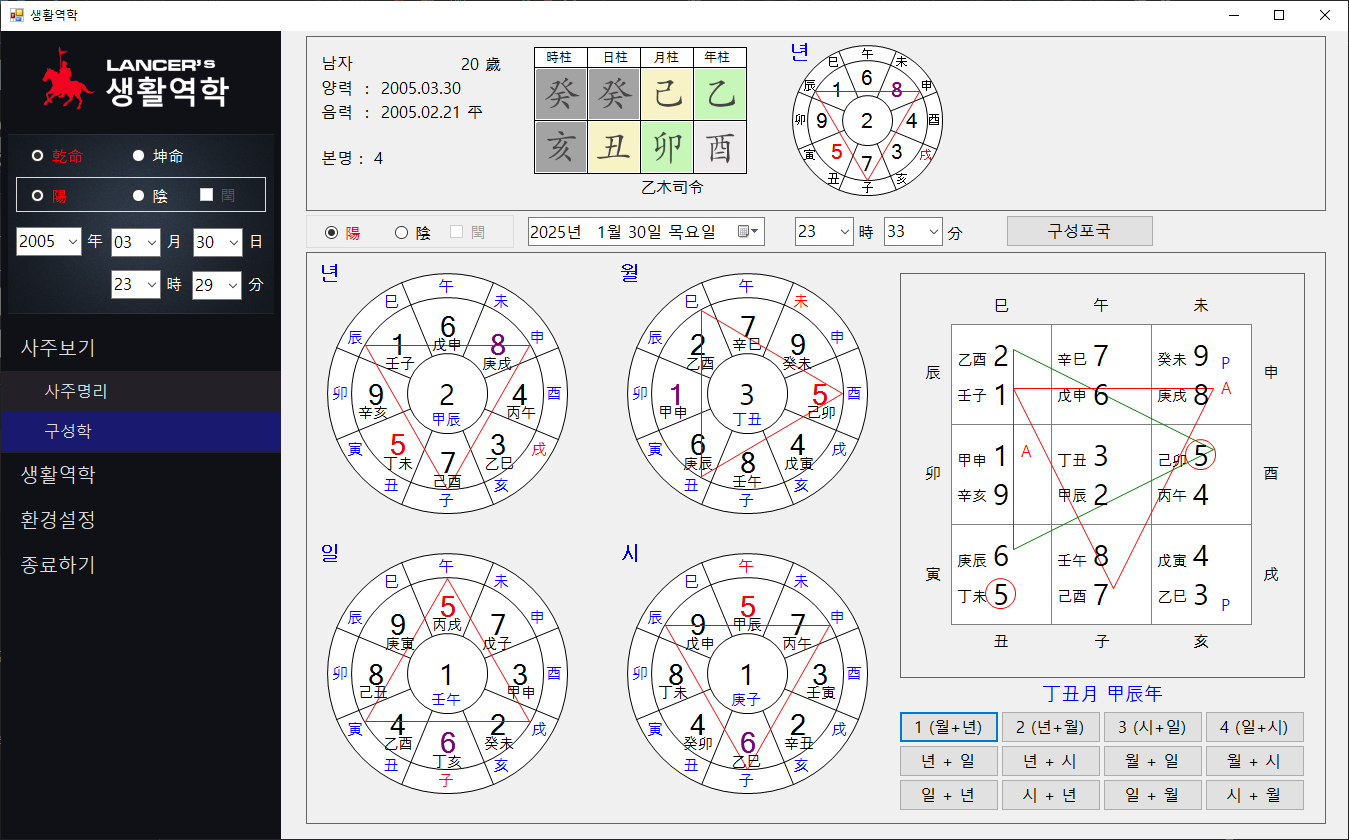 생활속에서 필요한 역학정보가 메인이지만 기본적으로 사주와 구성학을 포함시켰습니다.