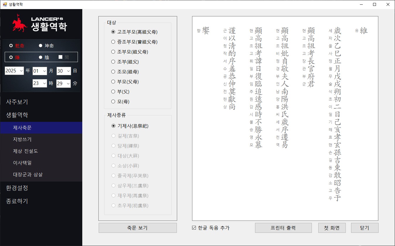 시간이 나면 촌수와 호칭, 그리고 성명학도 추가하고 싶은데 일단은 나중에 업그레이 하기로 하고