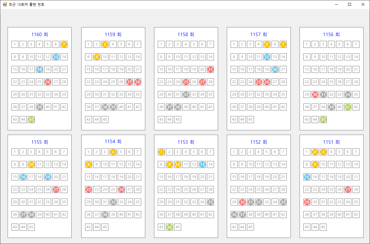 버튼을 클릭하면 최근 10회차 까지 당첨 패턴을 분석해주는 기능입니다.