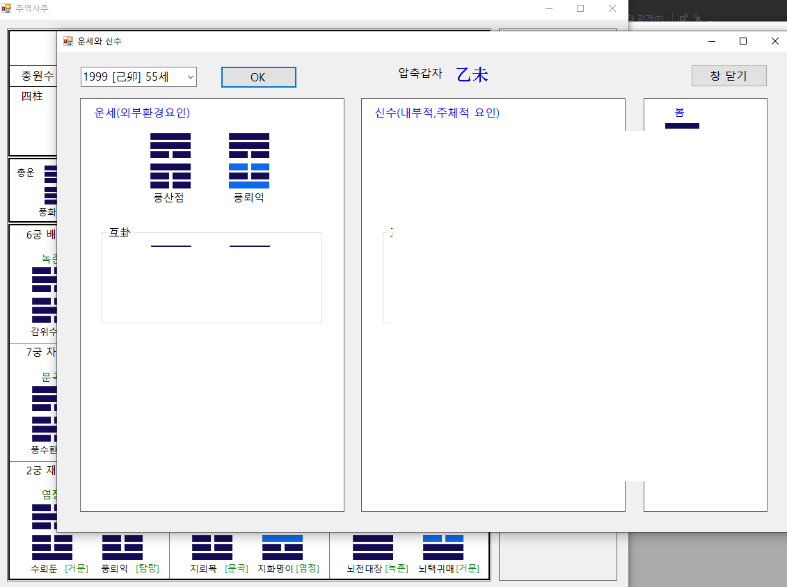 화면 내용을 삭제 했습니다만 55세에 풍뢰익이라는 길괘가 나옵니다.