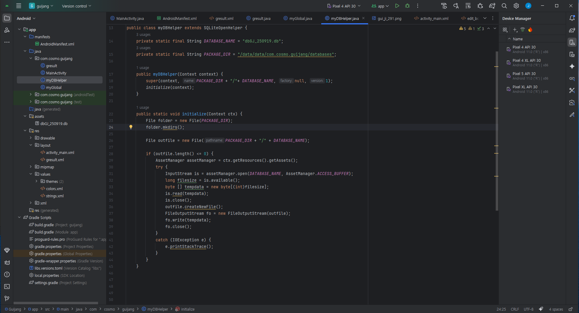 오랫만에 안드로이드스튜디오를 실행해 봅니다.